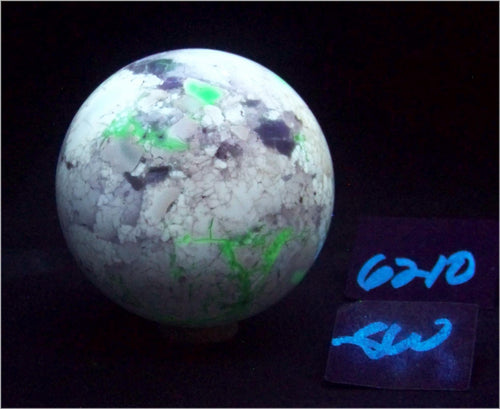 Fluorescent Chalcedony and Magnesite 70mm Sphere for UV Collection 6210