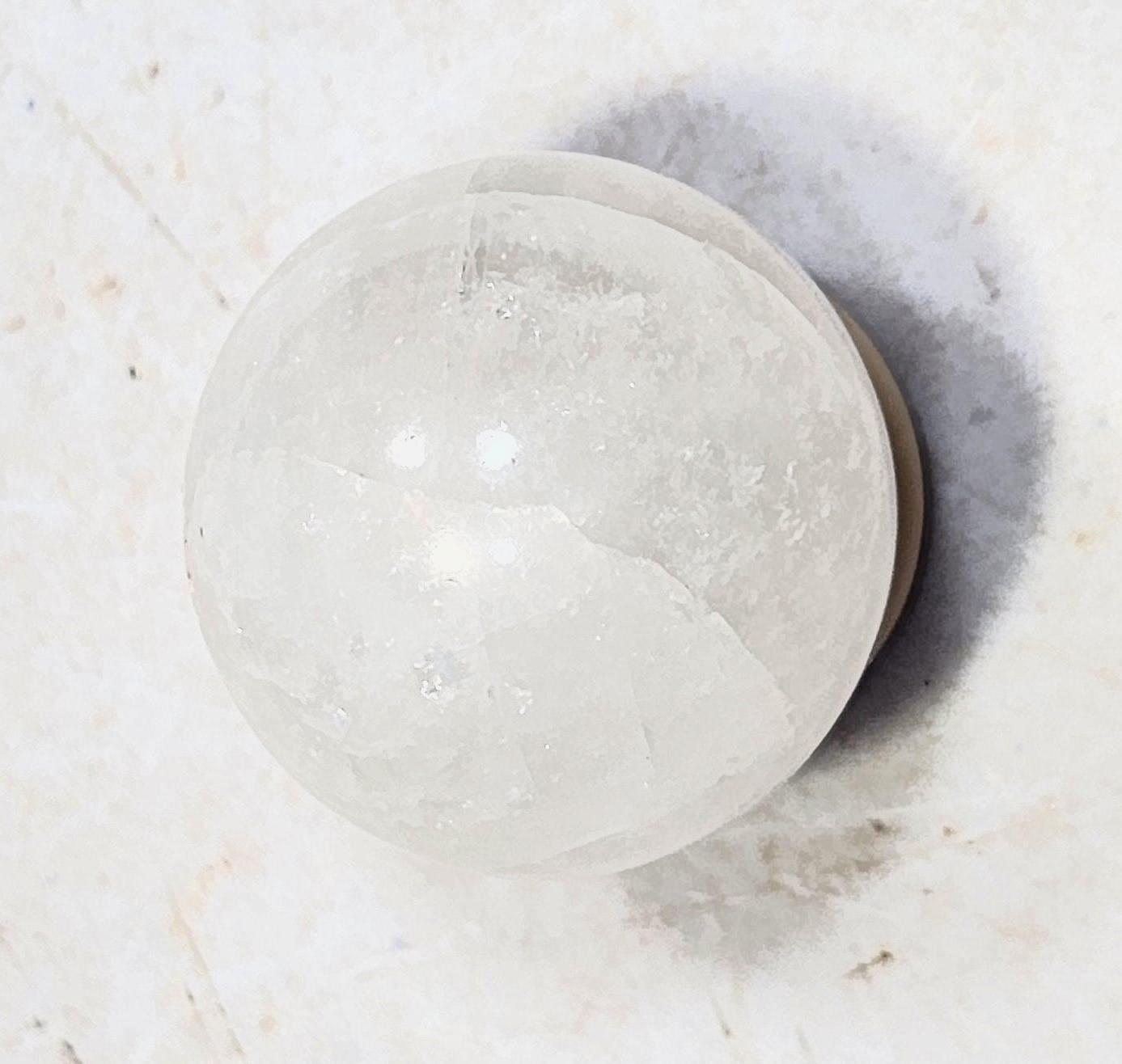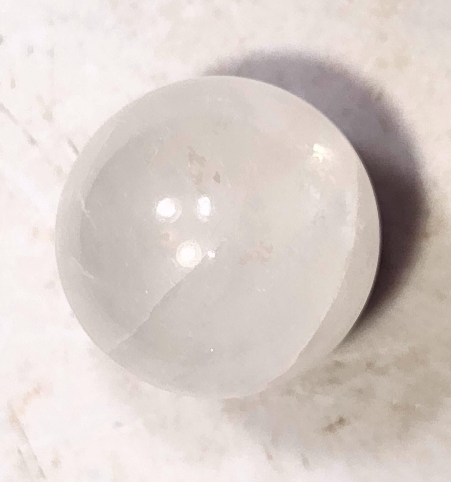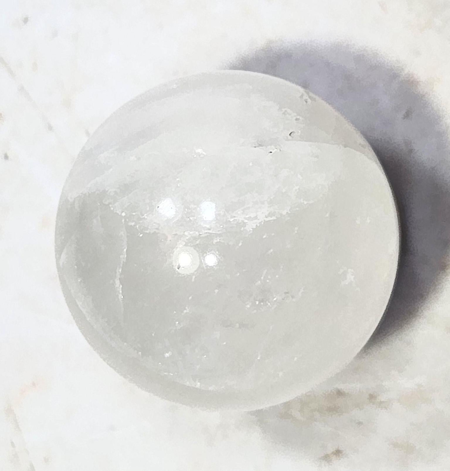 Featured here is a 1-1/4" Fluorescent Calcite sphere from an unidentified location that fluoresces beautiful, pale blue white under SW and lovely soft yellow under LW. This sphere is ready for your awesome home, or UV collection as it is. The lot weighs about 1.3 ounces. This is an impressive gift for UV mineral collectors because they won't already have one. This sphere has a particularly individual pattern while displaying the sought after UV colors of this rare mineral and a high finish. It's a great personal sphere at 1-1/4" for carrying or metaphysical work. It is ready for your awesome mineral sphere collection as it is, as well. Absolutely incredible Holiday or Christmas gift for anyone who collects stones or does metaphysical healing or Reiki work.