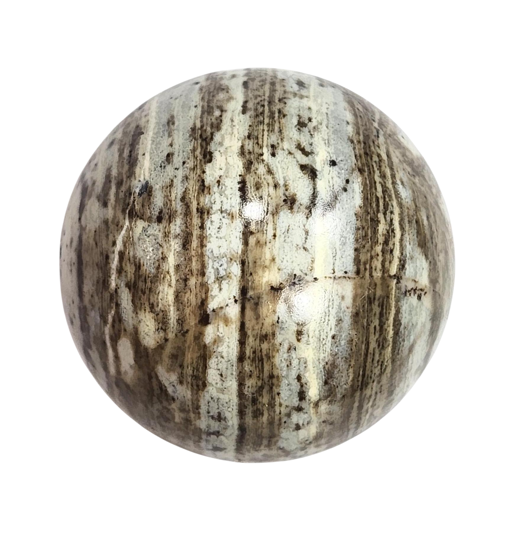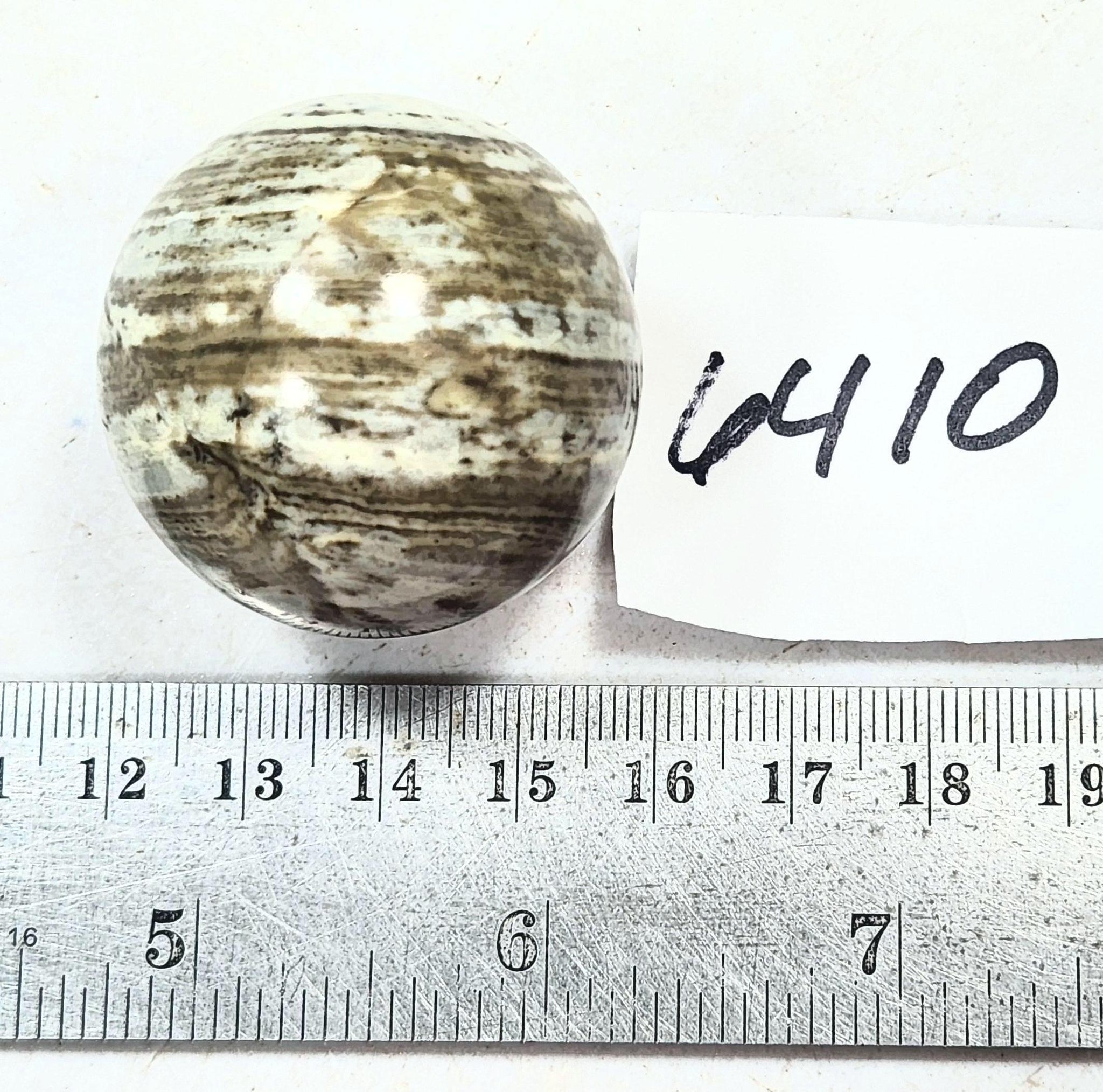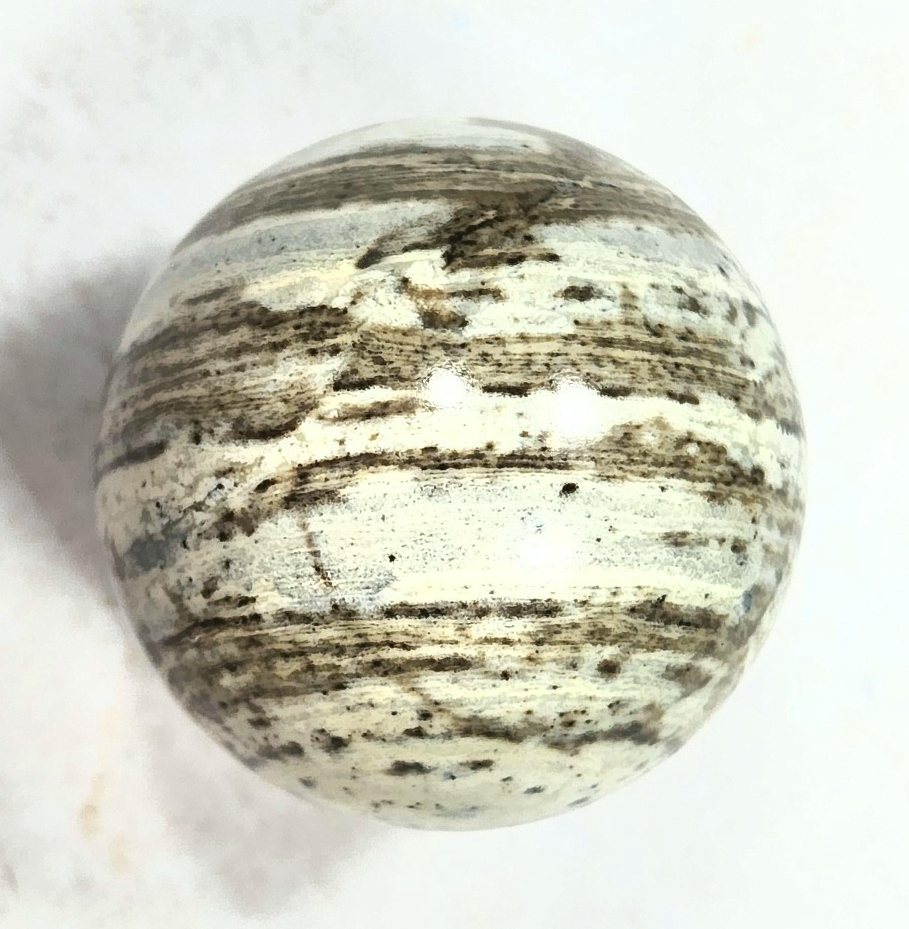 Featured here is a beautiful 1-1/2" or 38mm Striped Serpentine sphere, this material is from Roosevelt Lake in AZ. This is a rare and truly one a kind art work sphere for your home. It is ready for your awesome mineral sphere collection as it is as well. The lot weighs about 2.4 ounces. Ideal one-of-a-kind all occasion gift for anyone that loves stone artwork. It's a discriminating gift that will last virtually forever. Finish off your Christmas and Holiday gift list with original, handmade artwork that you can be as proud of as we are.